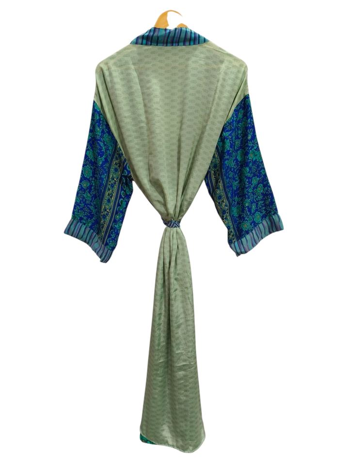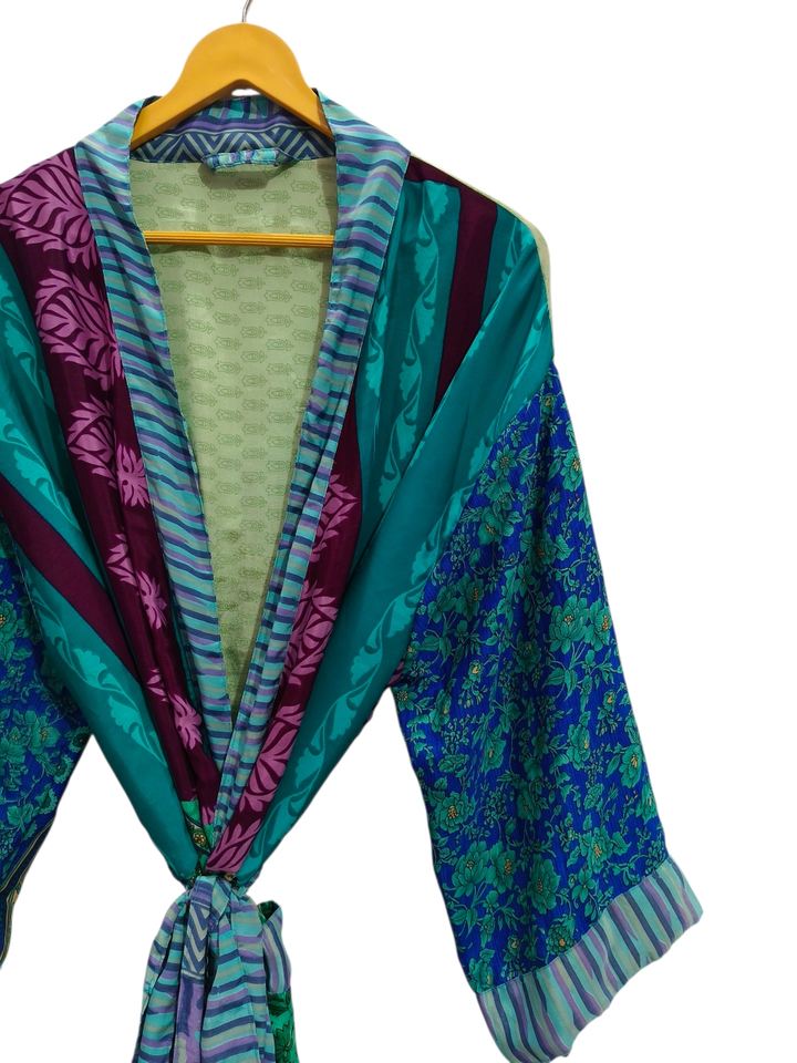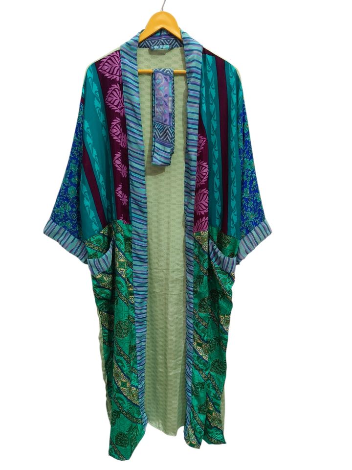 Regal House Wear Soft Silk Bathrobe Multi Color Robe Night Wear Robe Indian Vintage Recycled Silk Sari Kimono,