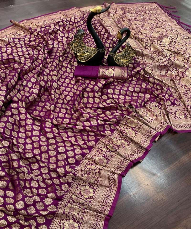 Sari en Georgette de Soie Rayonne Royal avec Ornements de Perles et de Pierres, pour Soirée, Mariage, Saison des Fêtes, Sari Court pour un Mouvement Facile et Confortable