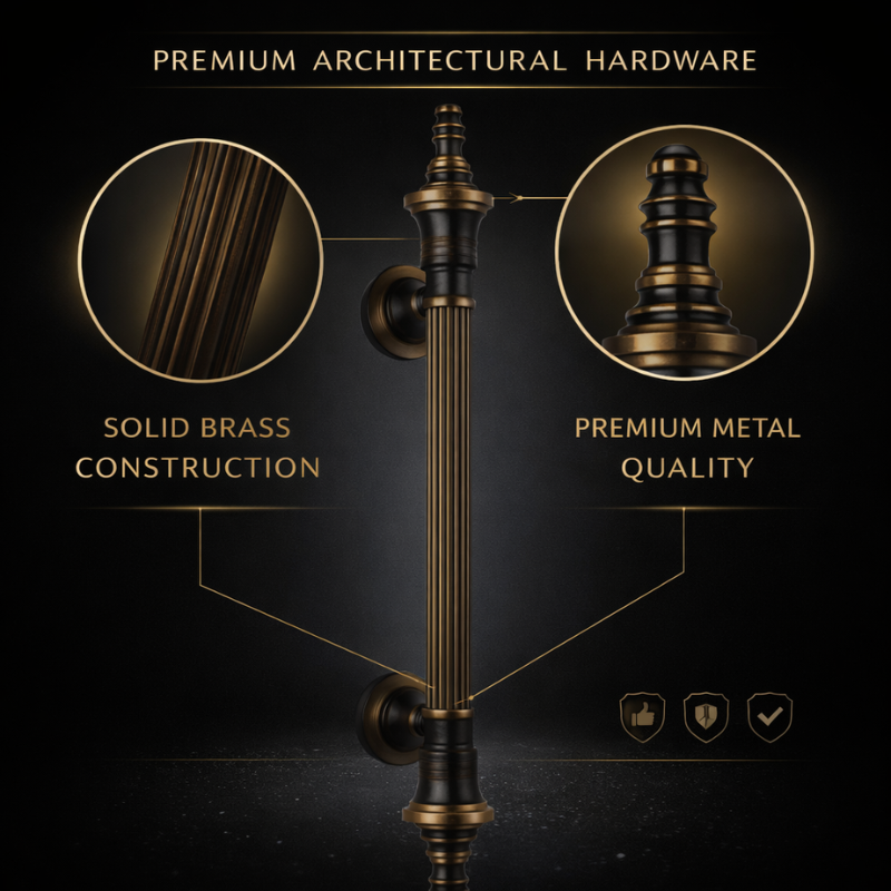 Poignée de porte en laiton massif côtelé Regent | Poignée de porte d'entrée moderne et durable pour usage hôtelier | Architecture décorative