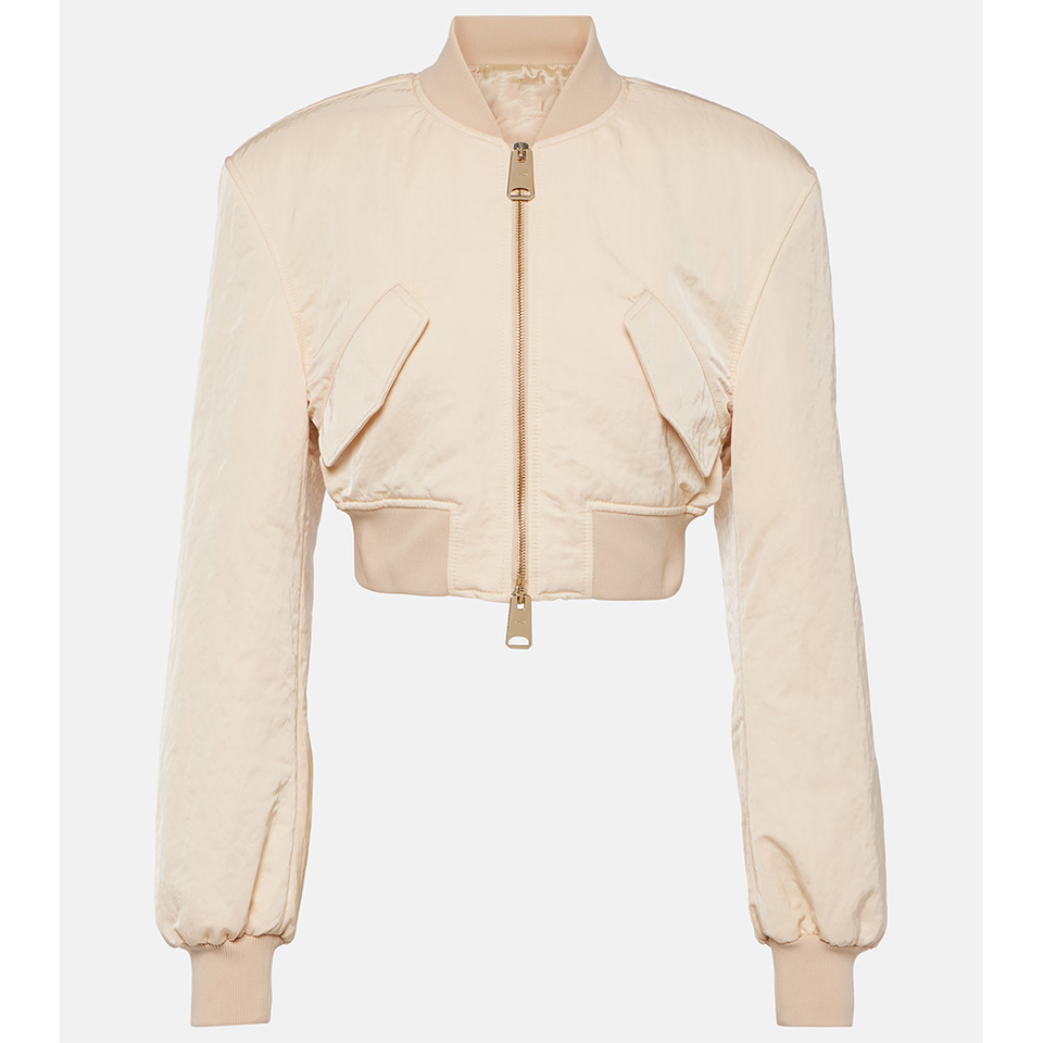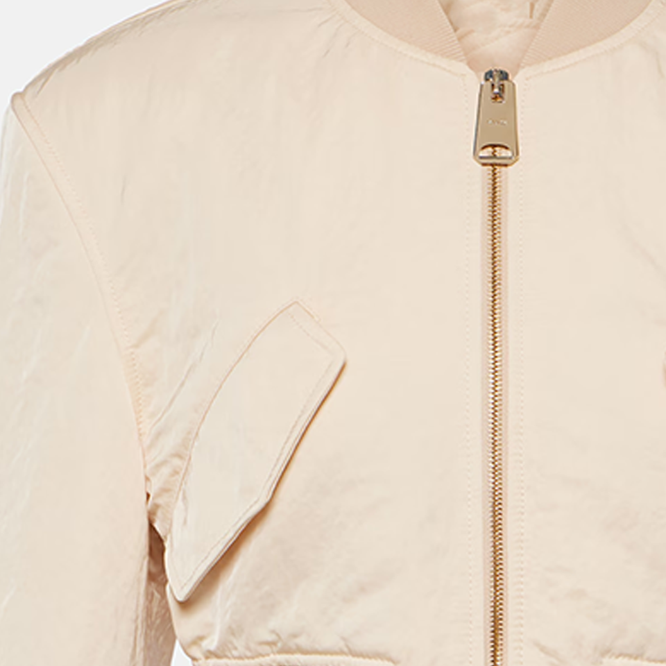 Blouson Bomber Reggie en Satin Texturé Effet Os, Épaules Oversize, Fermeture Éclair Bidirectionnelle, Réversible, Imperméable, Unisexe, Luxe