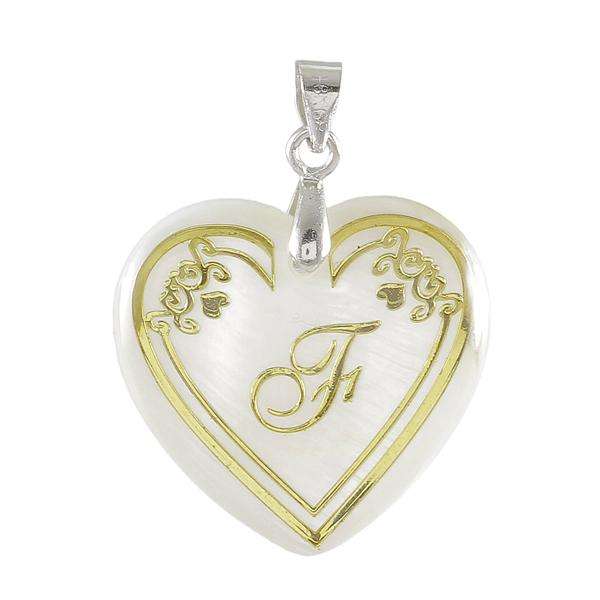 Regina Alphabet F Pendentif en coquillage en forme de cœur en alliage de zinc plaqué or 24K Logo personnalisé Style religieux avec zircon Étanche