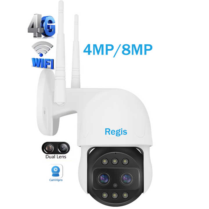 Caméra Dôme PTZ Mini Tout Métal Étanche IP66 Regis Camhi 4MP 8MP 4G WiFi Sans Fil Longue Portée 40m IR Double Vision Nocturne CMOS