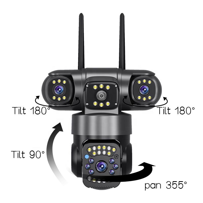 Caméra de sécurité intelligente extérieure WIFI avec suivi automatique, trois objectifs, 3 écrans, 12MP, 4G SIM Card LTE PTZ, capteur CMOS, Regis V380Pro