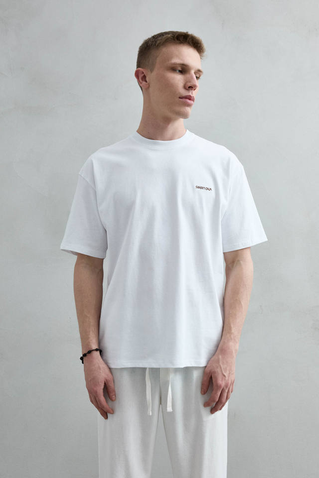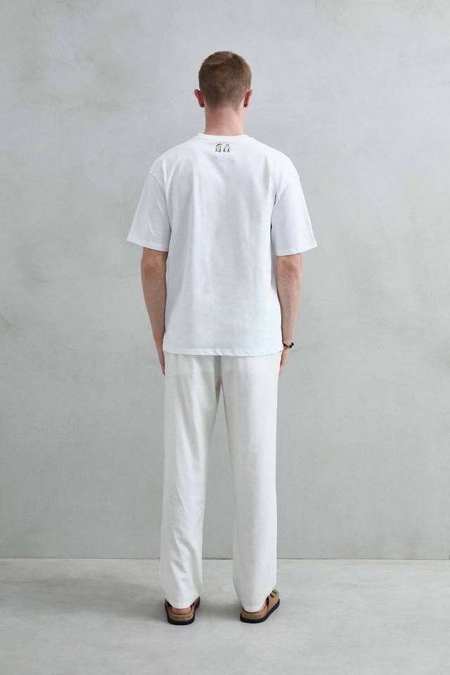 T-shirt à manches courtes en coton beige pour homme, coupe classique, imprimé floral, style décontracté quotidien, 240 grammes