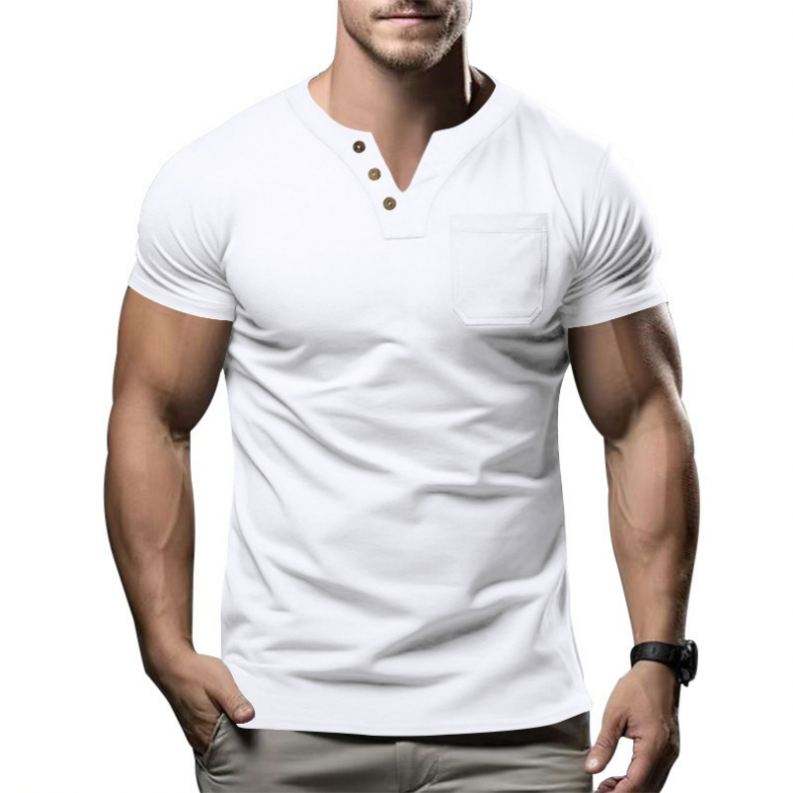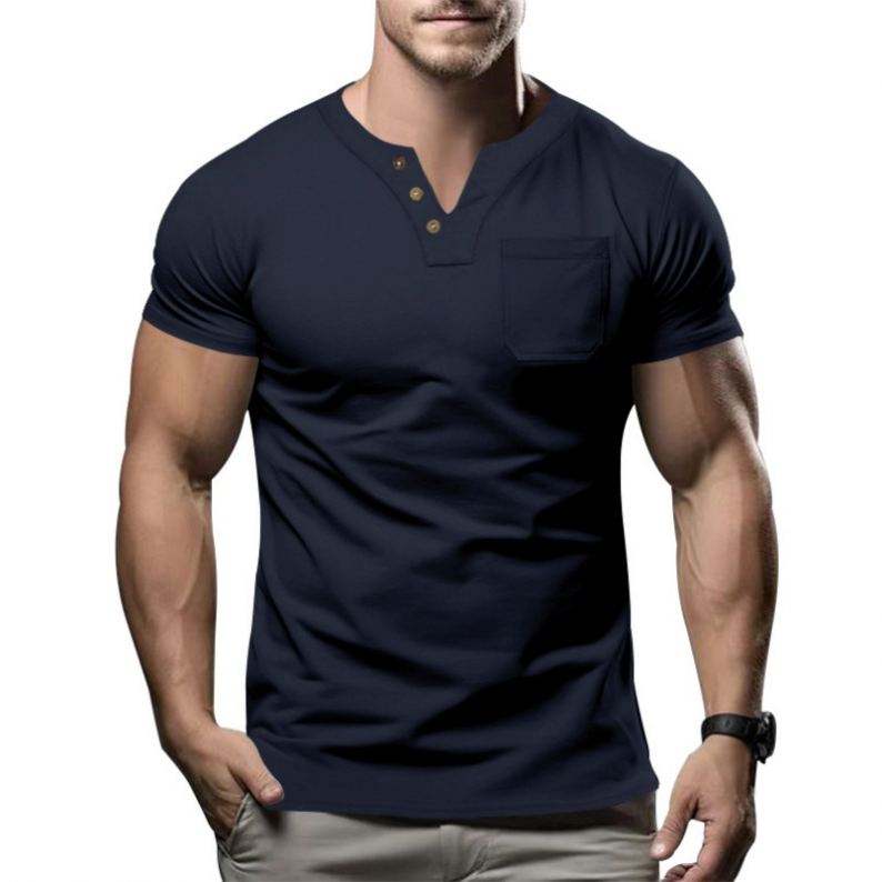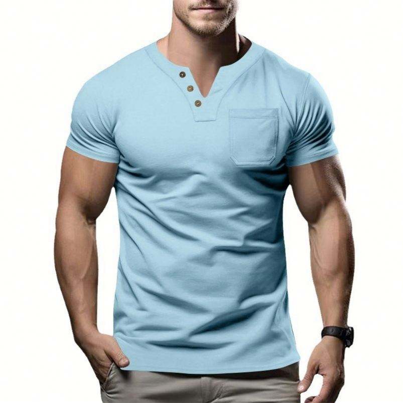 T-shirts pour hommes de haute qualité coupe régulière sport Streetwear mode coton Spandex bouton t-shirts pour hommes t-shirts pour hommes