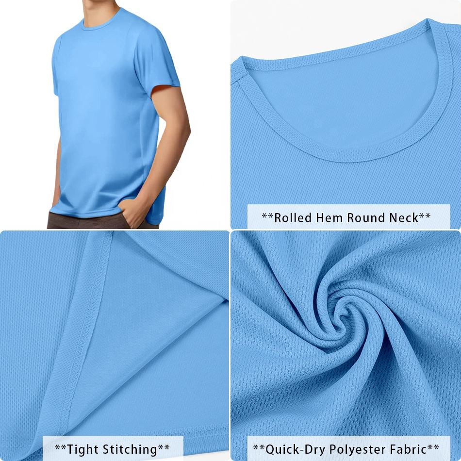 T-shirt à coupe classique, t-shirt pas cher, t-shirt à col rond, t-shirt de sport respirant pour hommes, personnalisable, 100% polyester, blanc, t-shirt de sport pour hommes