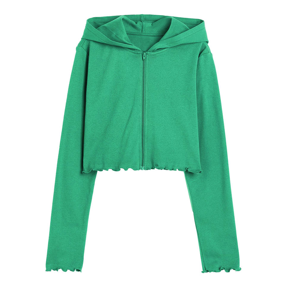 Haut court zippé à capuche en coton et polyester, coupe droite, côtelé, grande taille, couleur unie, vêtements pour femmes, modèle OEM Premium, coupe ample