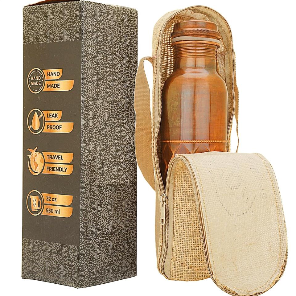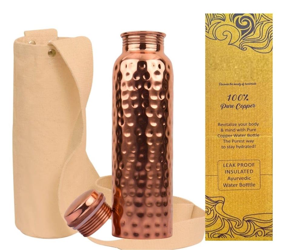 Bouteille d'eau en cuivre de conception martelée régulière, taille standard durable, disponible à la vente, cadeau avec prix nominal à vendre