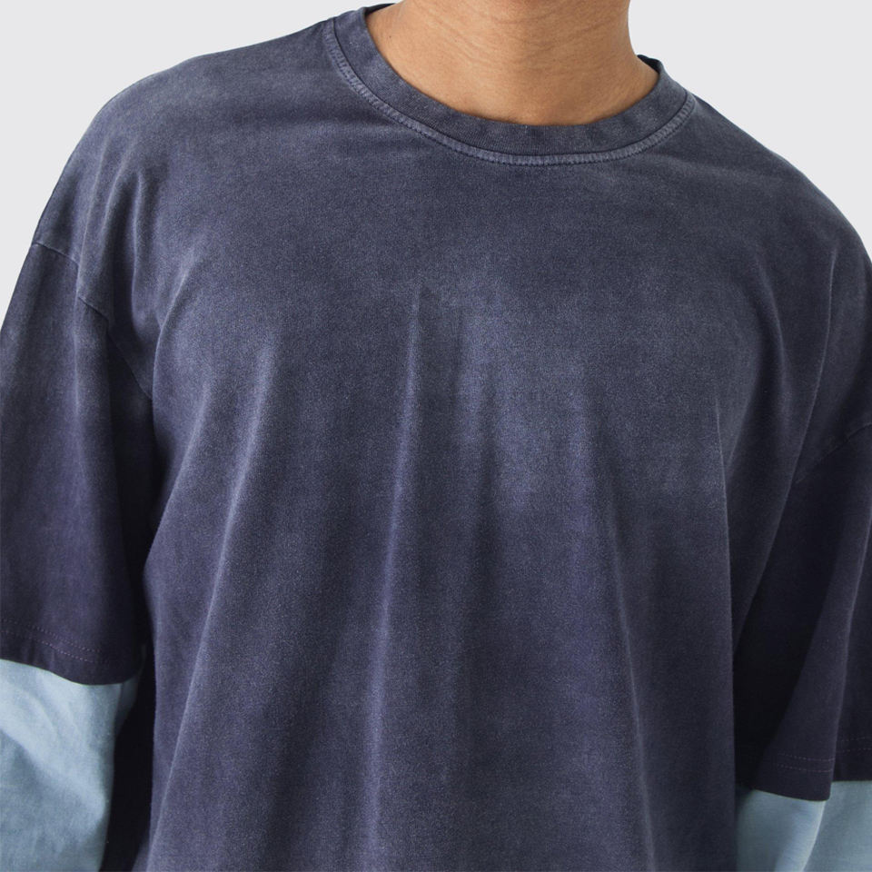 Product name:Men Double Sleeves Acid Wash T Shirt