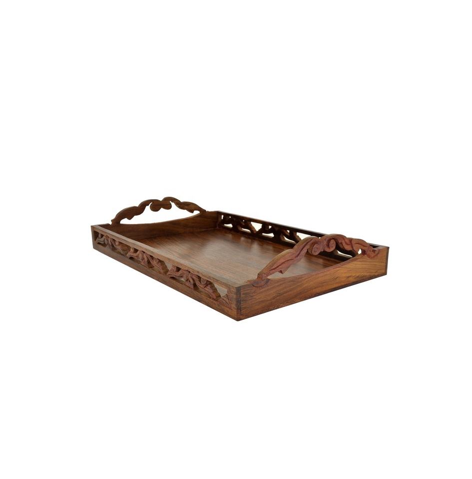 Plateau petit-déjeuner léger en bois de manguier de forme régulière avec poignée en métal grossiste Vente directe en usine du fabricant