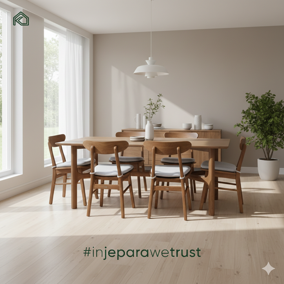 Ensemble de salle à manger Reha - Bois de teck moderne et chaises rembourrées pour une utilisation en extérieur et en chambre à coucher Améliorez votre expérience culinaire
