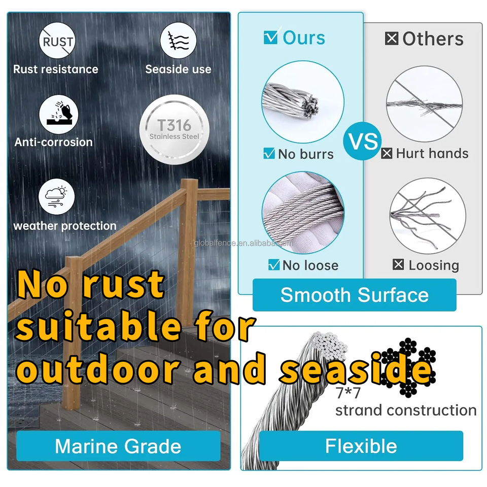 Système de garde-corps à câbles pour escalier 304 de 36 pouces pour la conception d'escaliers