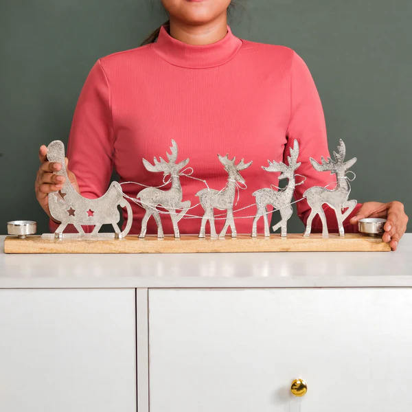 Lampe de thé en métal de renne et bougeoir décor à la mode pour Noël et Diwali