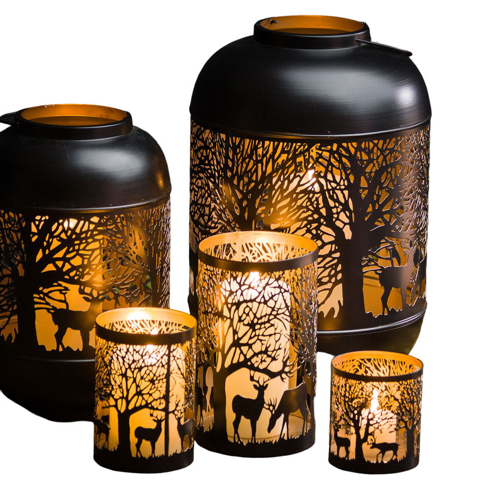 Thème renne complet famille décoratif Mini bougeoir en métal noir décoration de table pièce maîtresse autres lanternes bougie