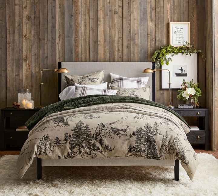 Reindeer and Pine Trees Printed Hot Selling Bedding Det Duvet Cover Natural French Linen Duvet Cover Bedding Set
