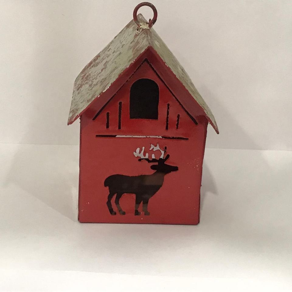 Petite lanterne en métal de style renne faite à la main Bougeoir de Noël rouge dans la conception de la cabane pour la décoration suspendue à la maison