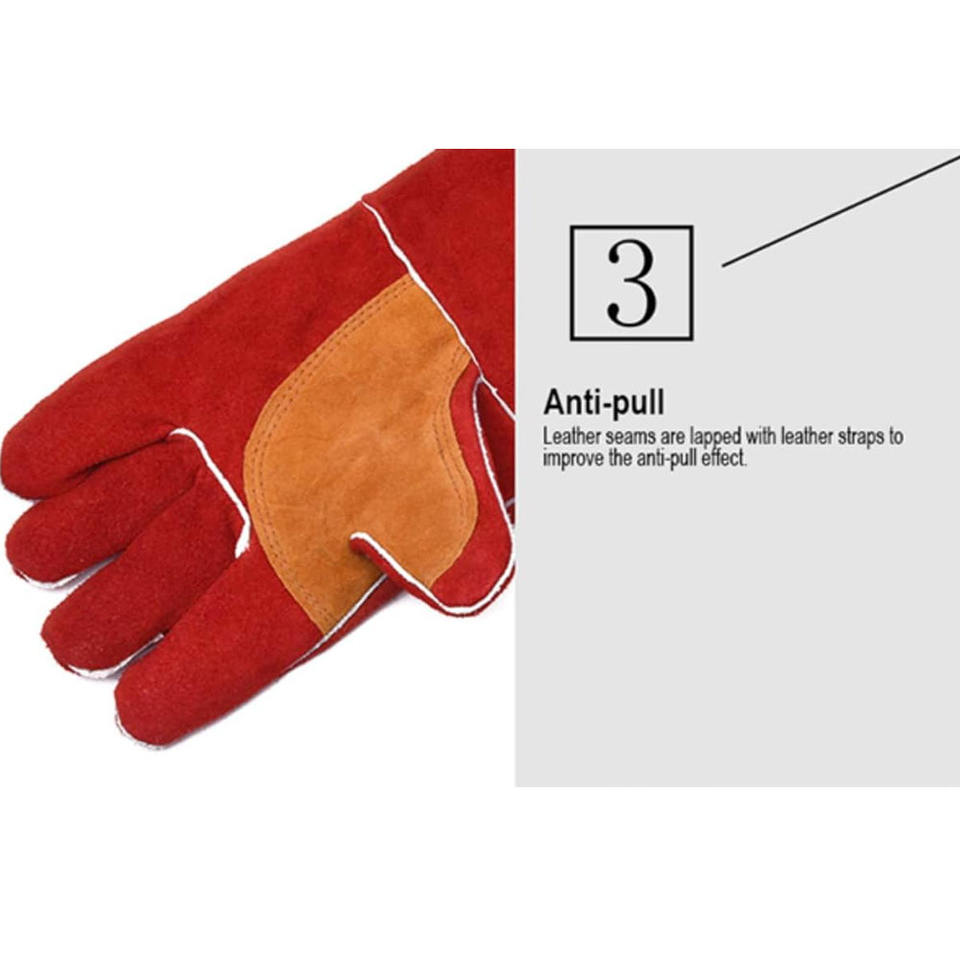 Gants de soudage en cuir de vachette renforcé Gants de soudeurs de construction résistants à la chaleur et aux étincelles résistants aux incendies