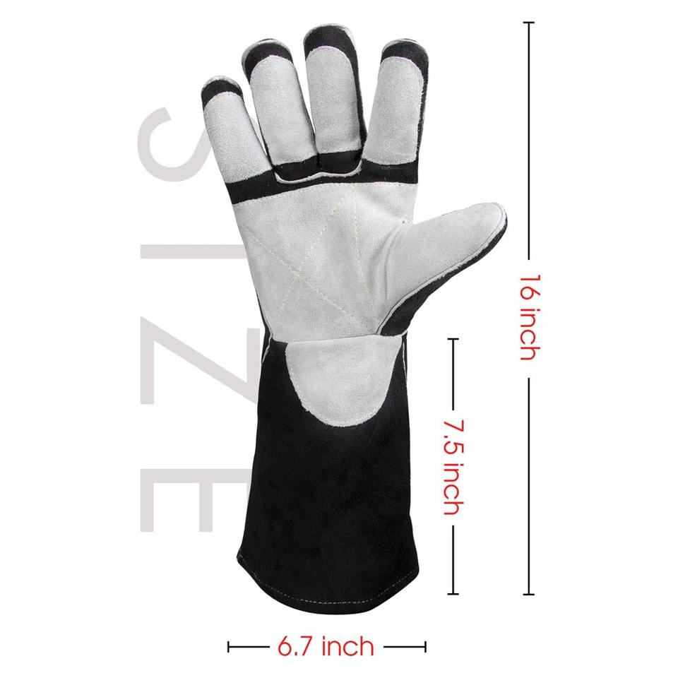 Gants de soudage renforcés en cuir de vachette fendu à doigts entiers Gants de construction ignifuges à usage intensif pour la lutte contre les incendies