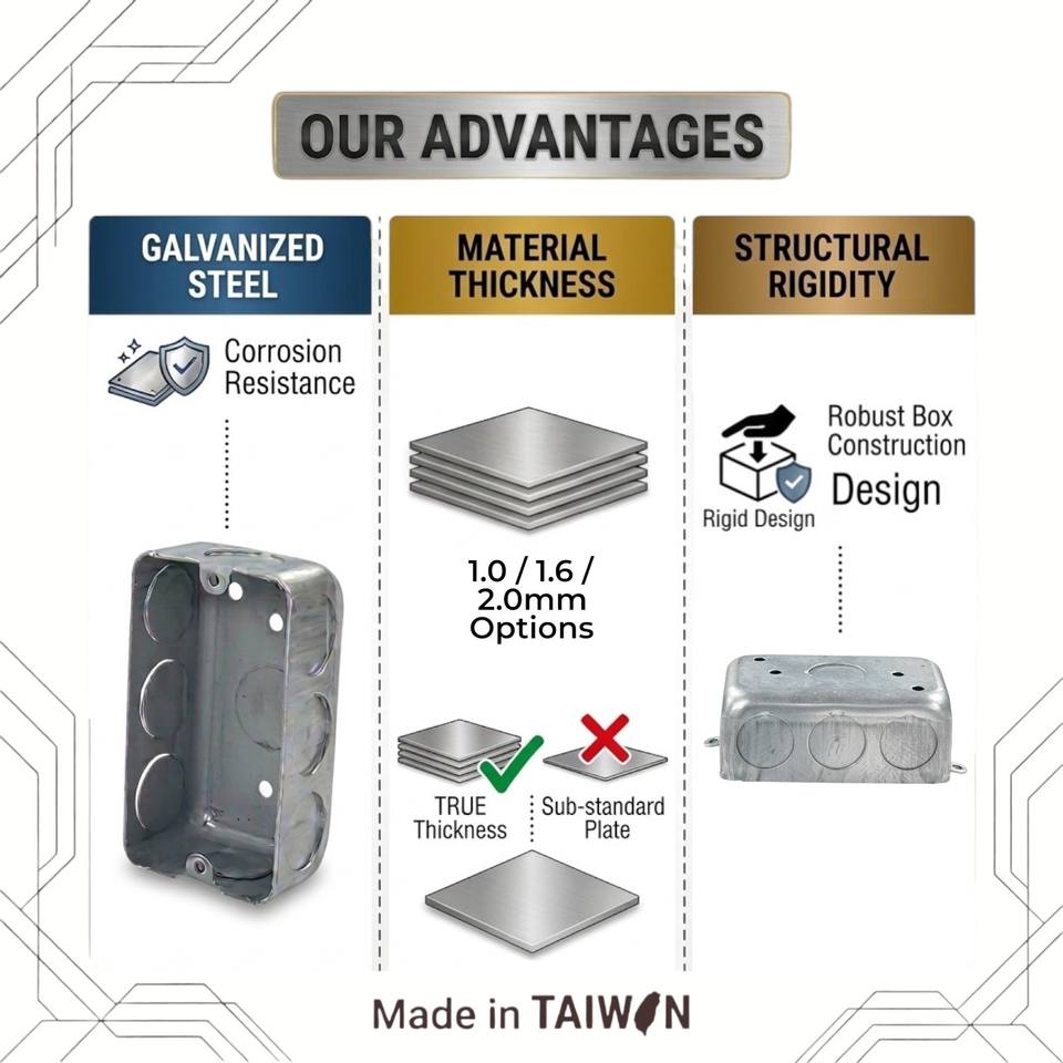 Boîtier de jonction en acier galvanisé renforcé (3,5'' H x 2'' L x 2'' P) 1,6-2,0 mm d'épaisseur, anti-corrosion, résistant au feu pour