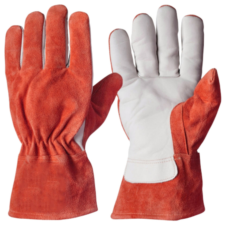 Gants de soudage TIG renforcés en cuir fendu de vache grain de chèvre résistants aux étincelles de chaleur Construction robuste Sécurité réfléchissante pour
