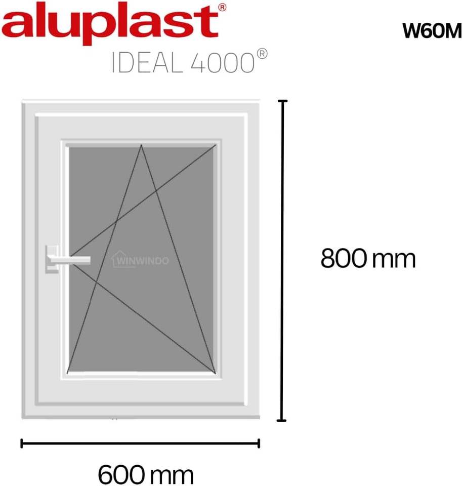 Fenêtre en PVC en acier inoxydable renforcé 600x800 Blanc | Balançoire oscillante à droite | Horizontal | Climalit Matte Crystal | Appartement