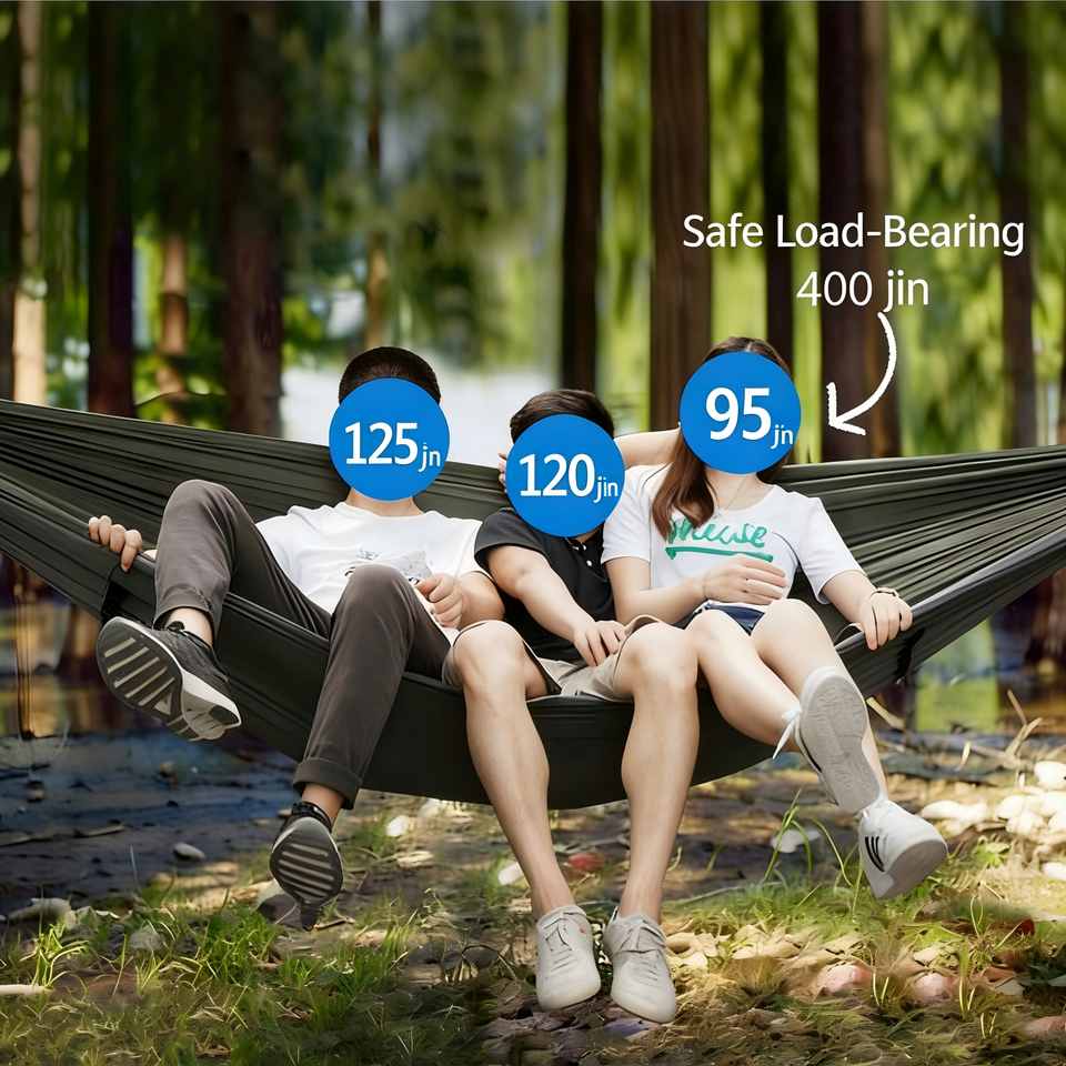 Hamac renforcé avec points de tension renforcés, nylon triple couture et filet à fermeture éclair robuste pour une utilisation à long terme