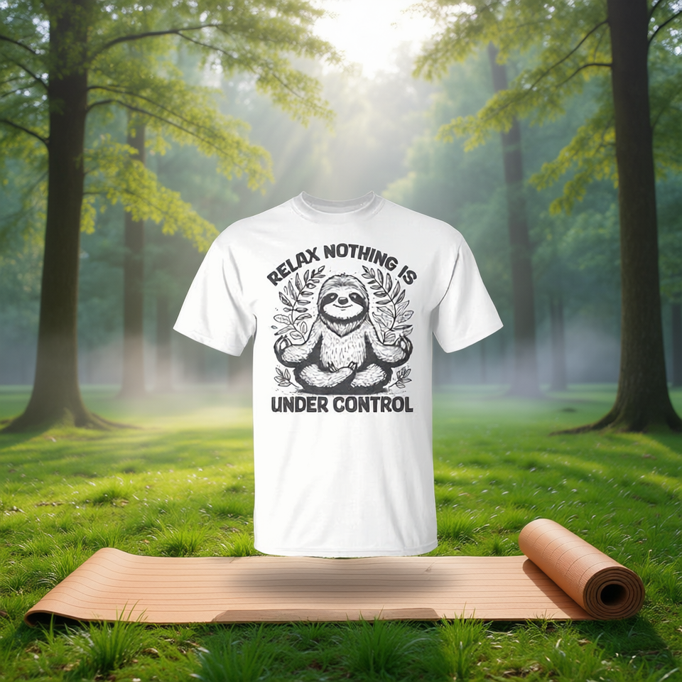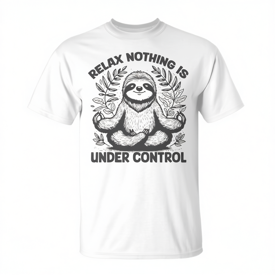 Relax, rien n'est sous contrôle, t-shirt de yoga mignon avec un paresseux dessiné
