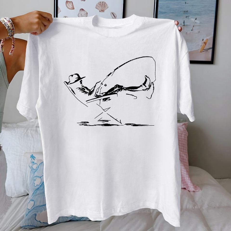 Relaxation serene fishing scene Women's pure cotton comfortable T-shirt