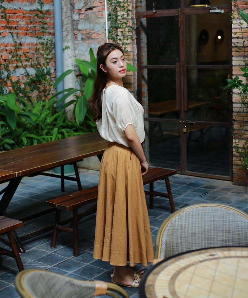 Relaxed Elegant Casual Women's Wide Waist Band Flare Long Basic Skirts High Waisted with Pocket