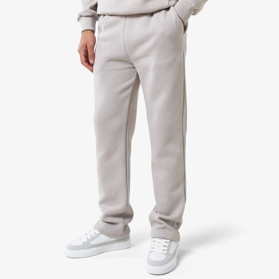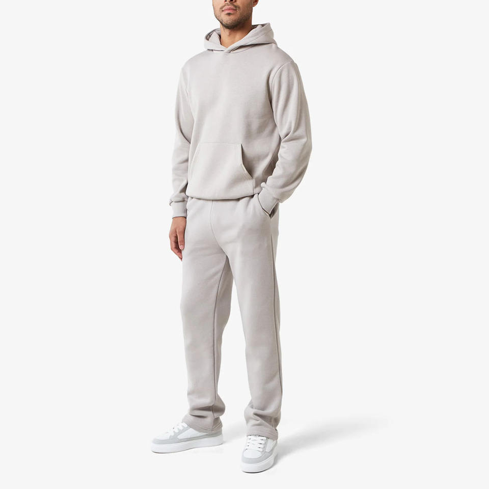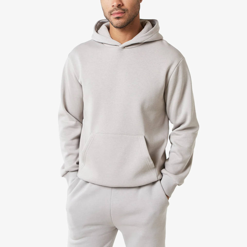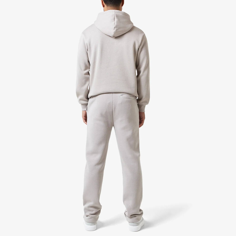 Survêtement homme coupe droite à ourlet ouvert, gris uni, sweat à capuche entièrement zippé, 400 GSM, doublure polaire en coton, taille élastiquée et cordons de serrage