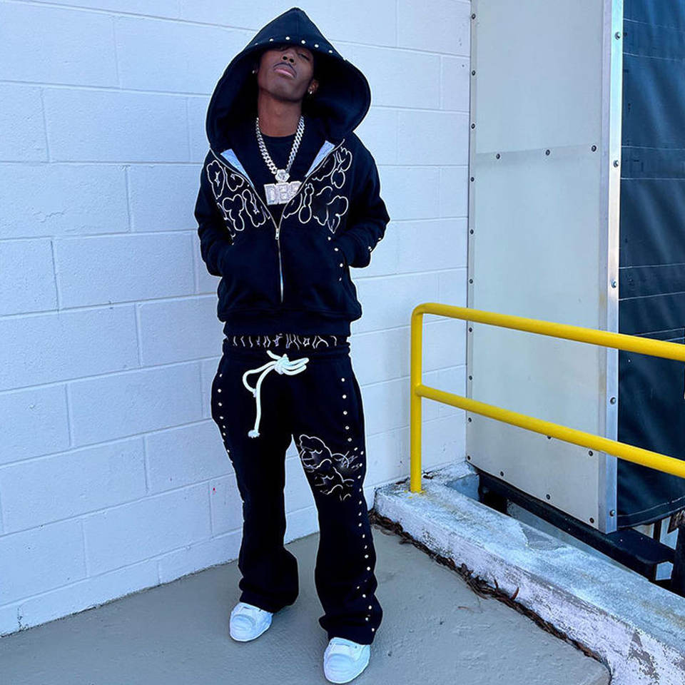Survêtement à strass de coupe décontractée pour un usage quotidien Ensemble sweat à capuche et pantalon de survêtement en coton mélangé brillant