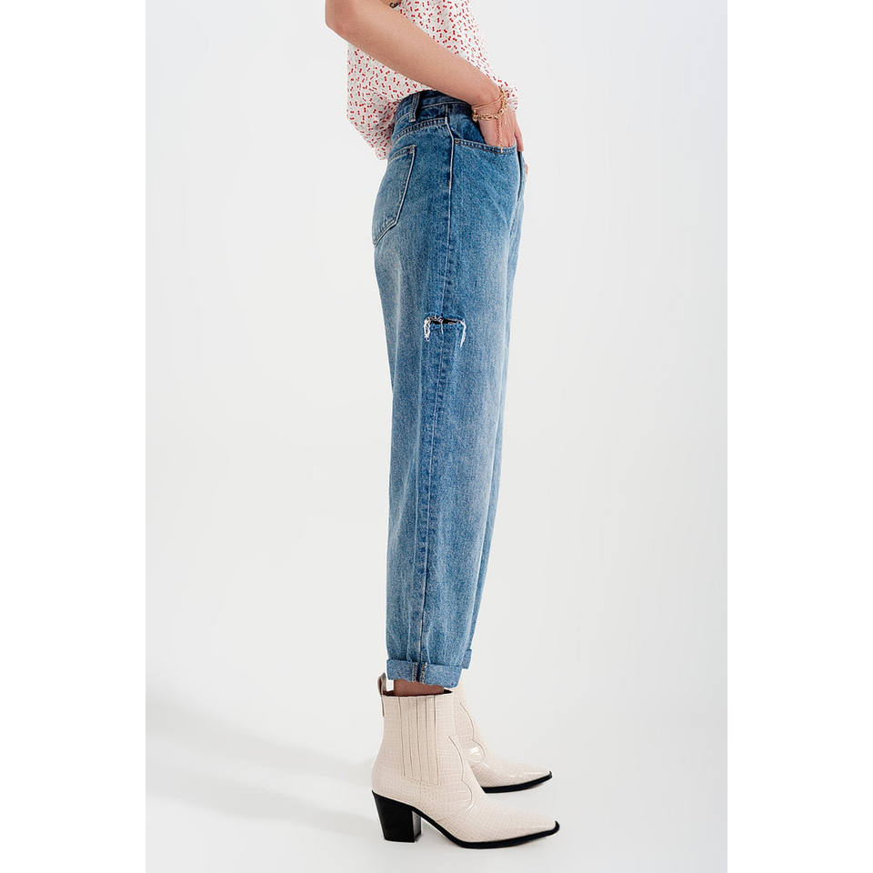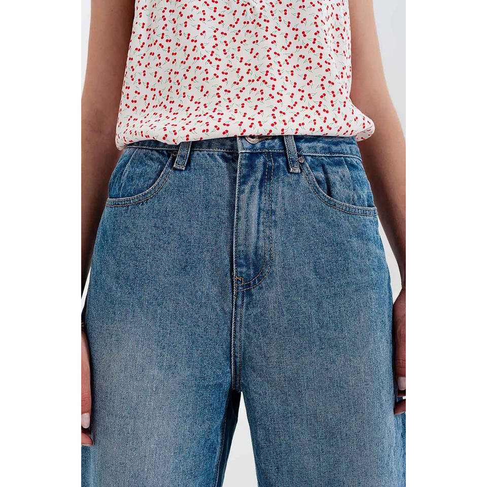 Jeans décontractés à fentes latérales en bleu moyen