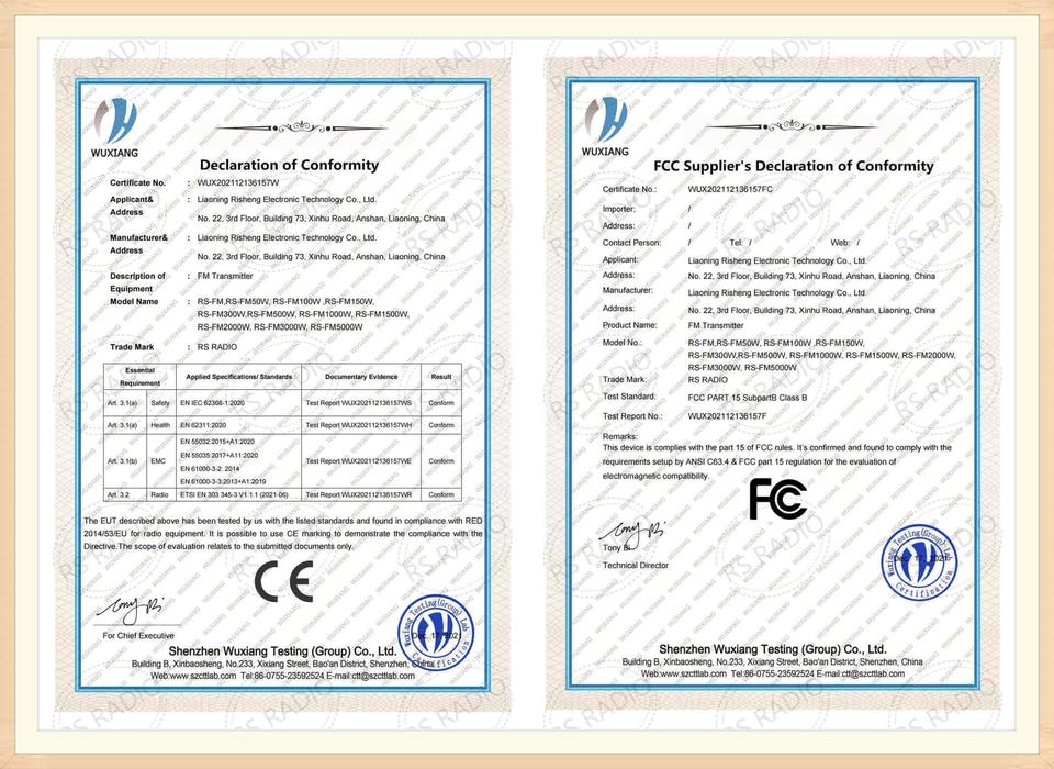 Certification:CE de la FCC