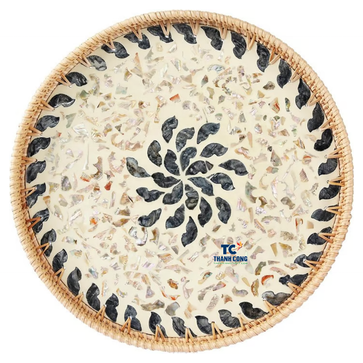 Exportateur fiable de plateaux en rotin et nacre, plateau de service luxueux fait main, plateau de service en nacre, Vietnam