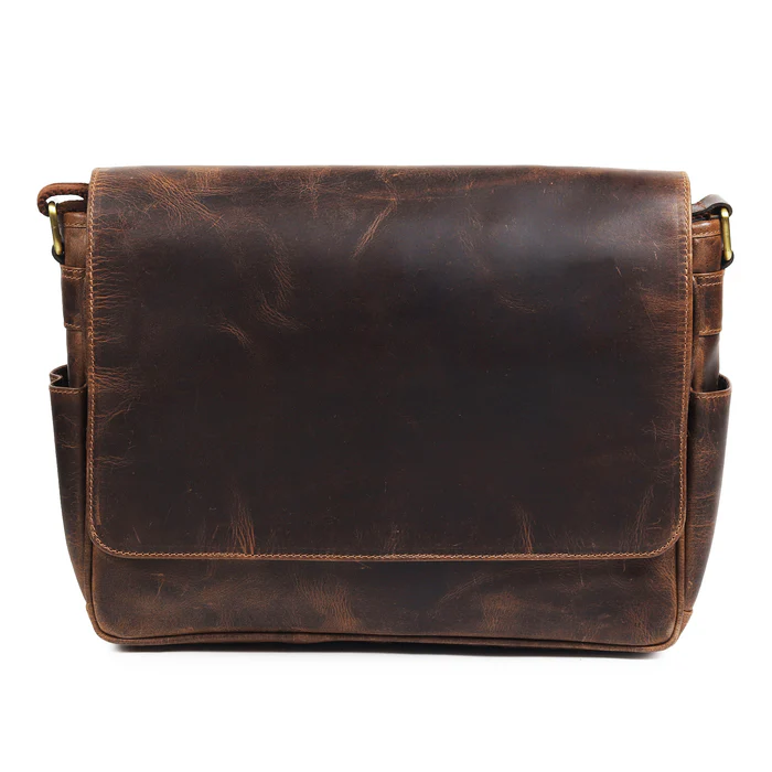 Sac pour ordinateur portable en cuir véritable fiable, 100 % cuir pur, avec base renforcée et poignées confortables.