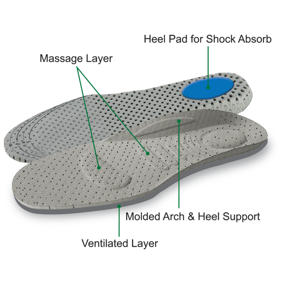 Reliable Flexible Sports Insoles Poron Cushioning EVA Shock Absorption Arch Heel Support for Walking Running Direct Malaysia