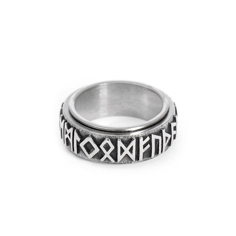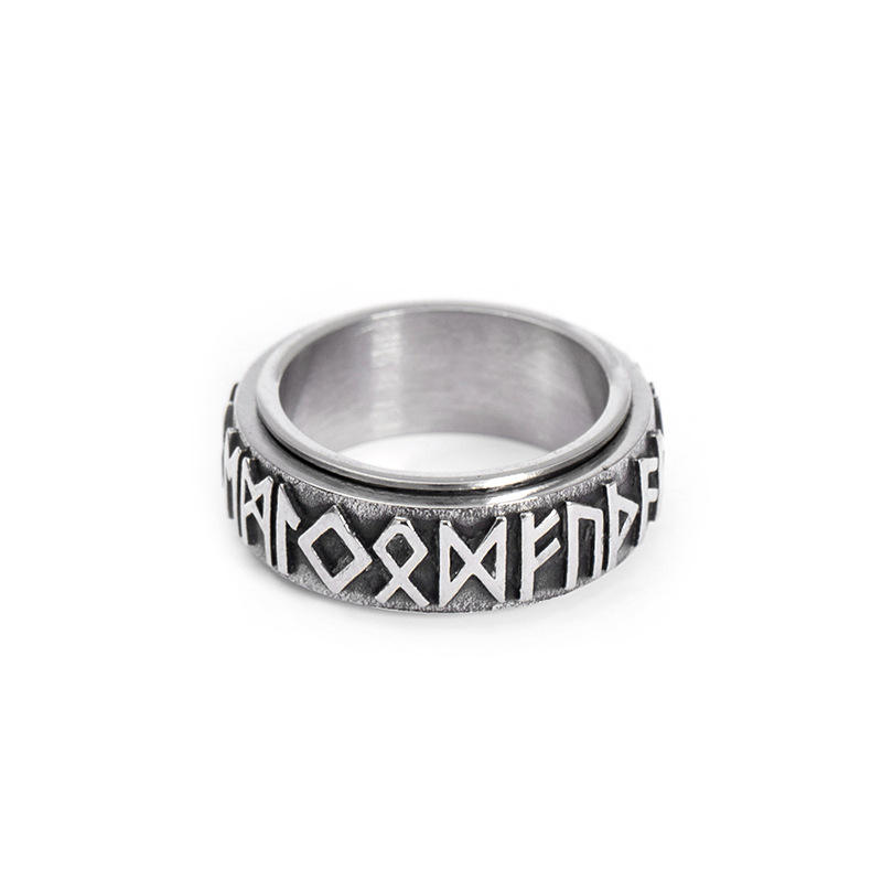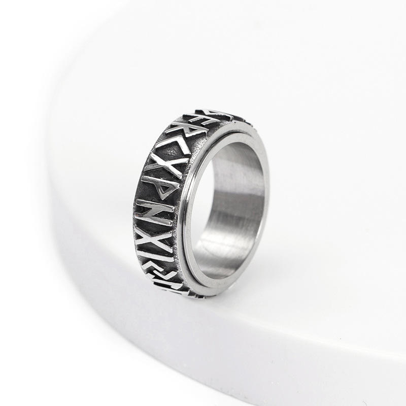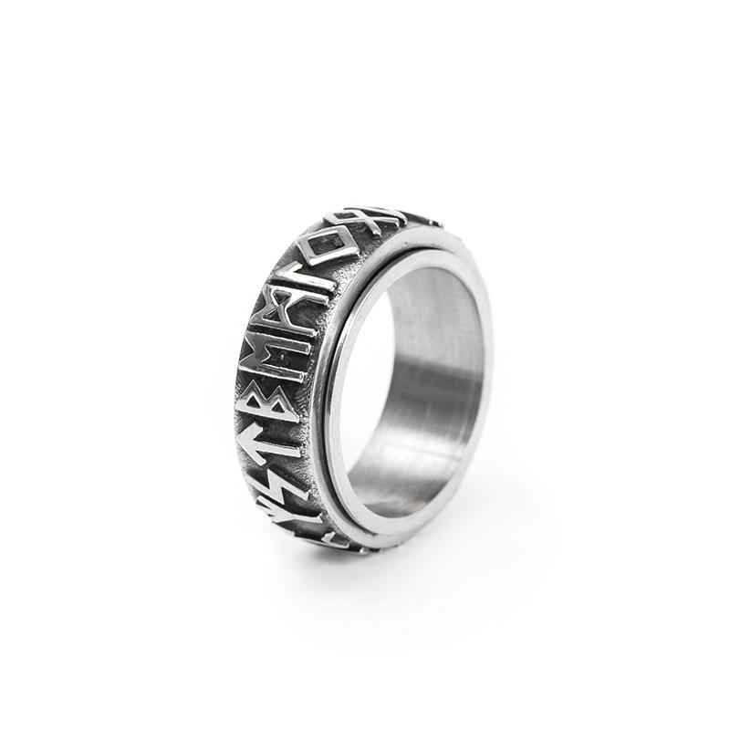 Relieving Anxiety Stainless Steel Fidget Band Rings Rune Alphabet Viking Spinner Anxiety Ring for Men Women