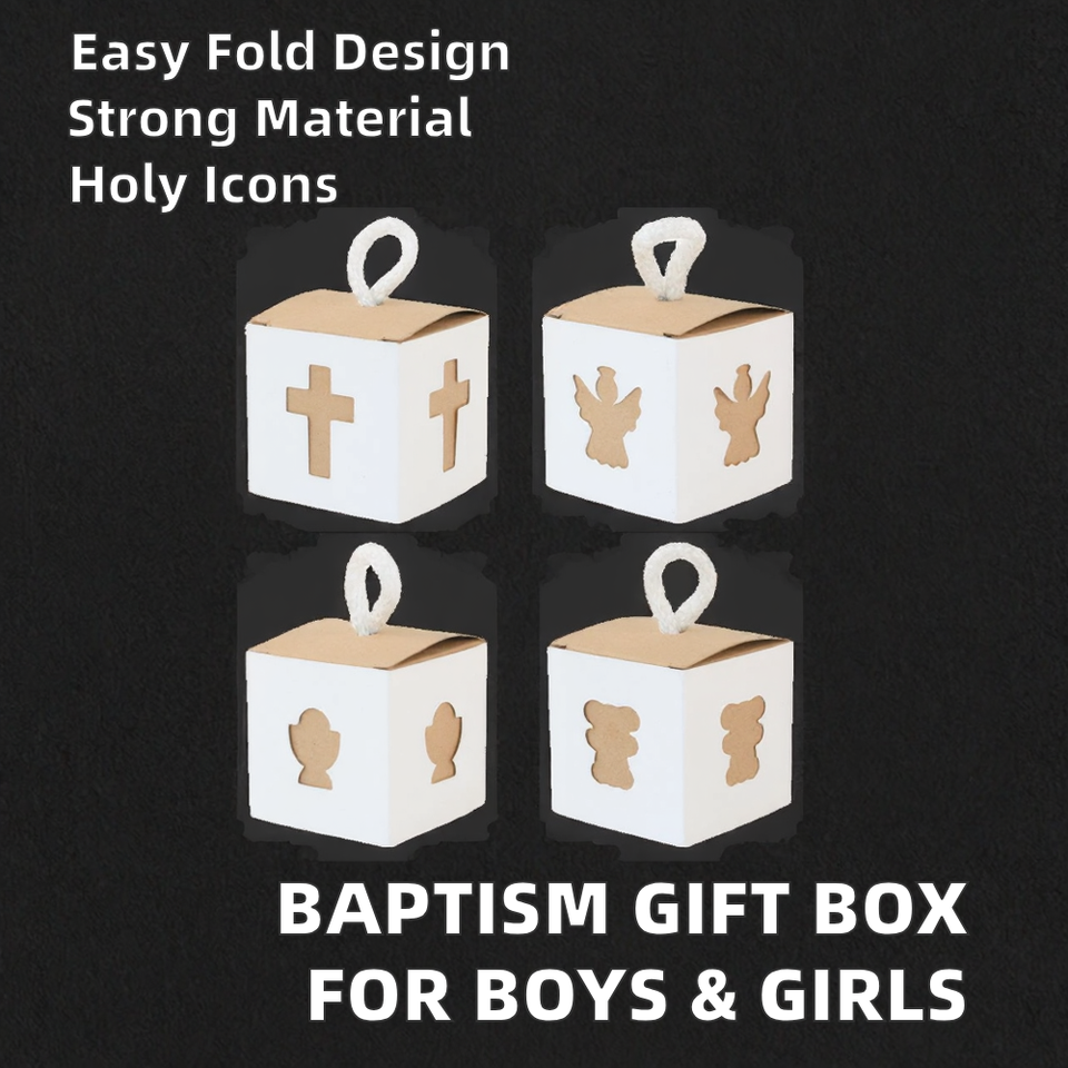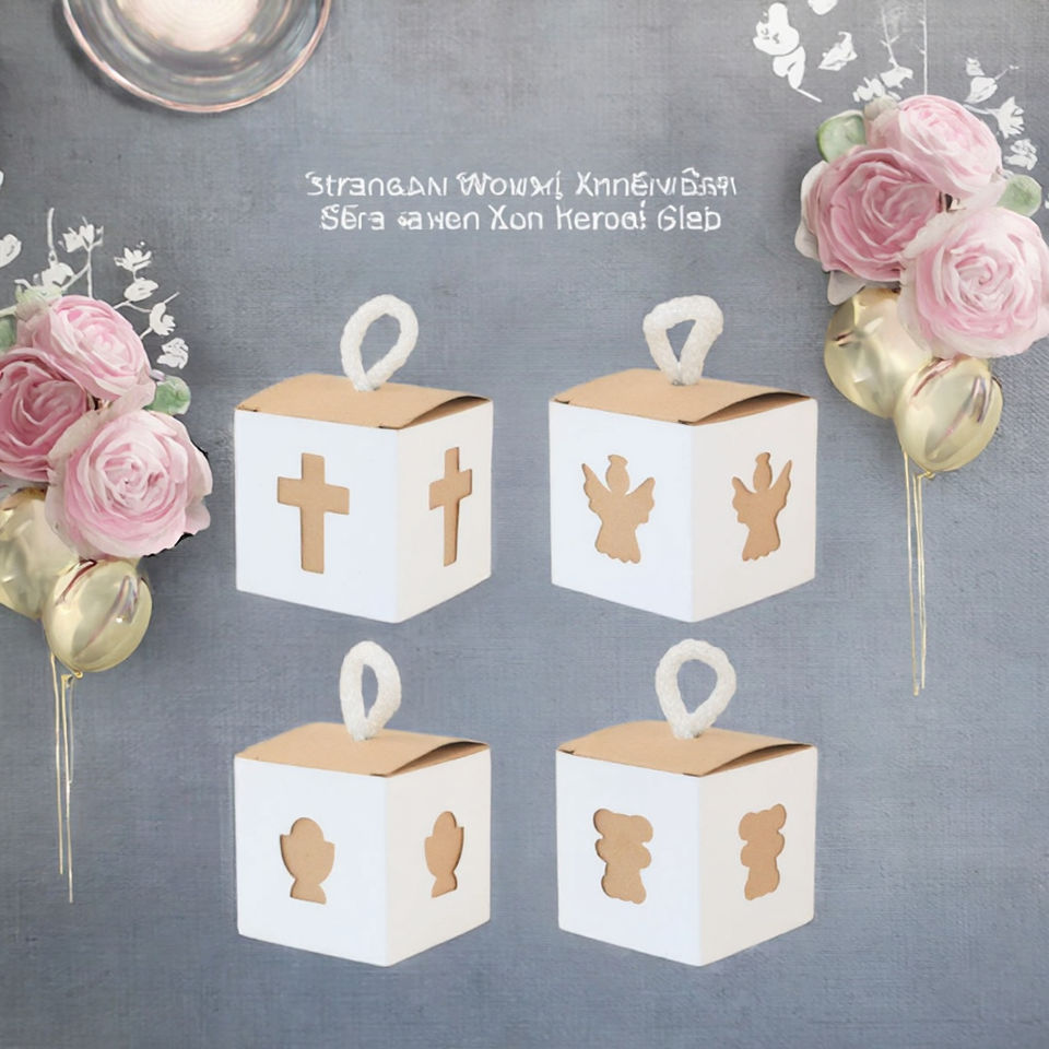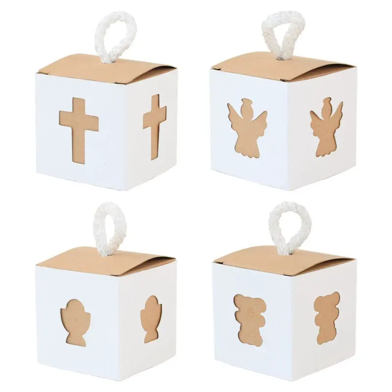 Baptême religieux fête papier faveur boîte-cadeau filles garçons baptême bonbons Kraft papier boîte croix ange conception impression en relief