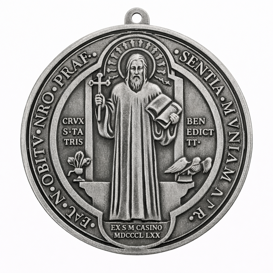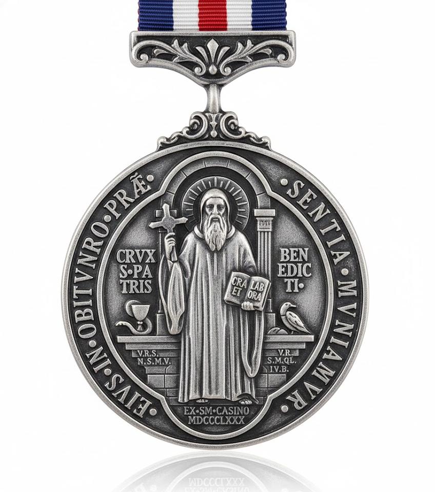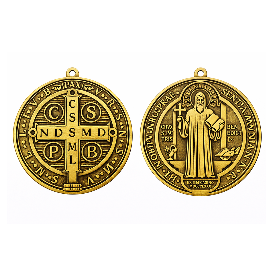 Souvenir religieux catholique, médaille antique de Saint Benoît en zinc plaqué or personnalisée avec impression UV et technique d'émail souple