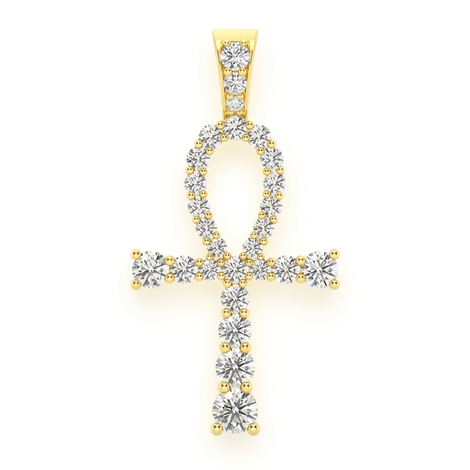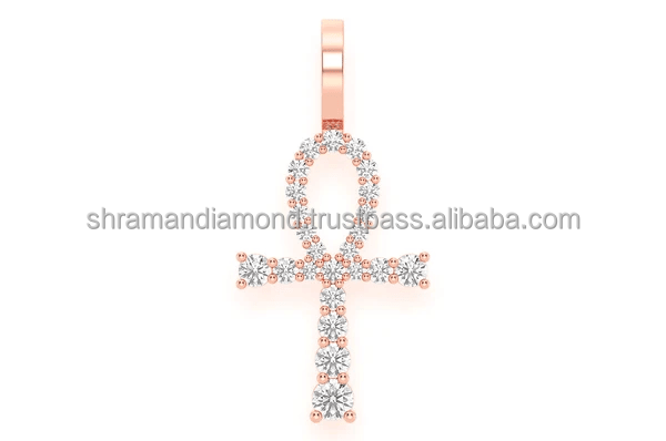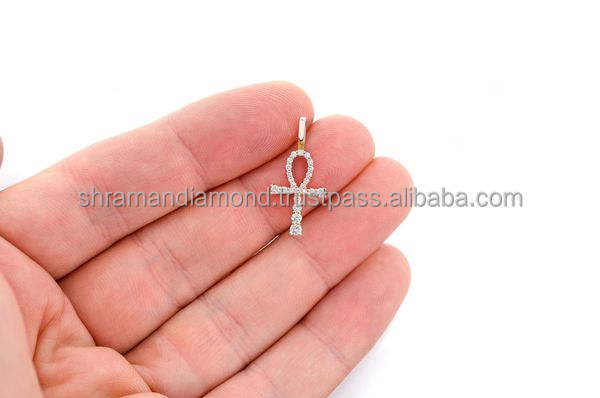 Collier personnalisé minimaliste unisexe en or véritable 10K avec diamants naturels, motifs religieux (Œil d'Horus, Ankh égyptien, Croix de Jésus) et breloques