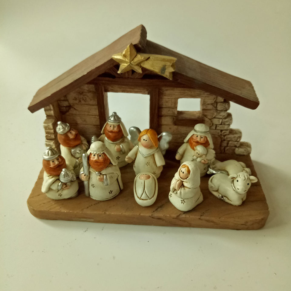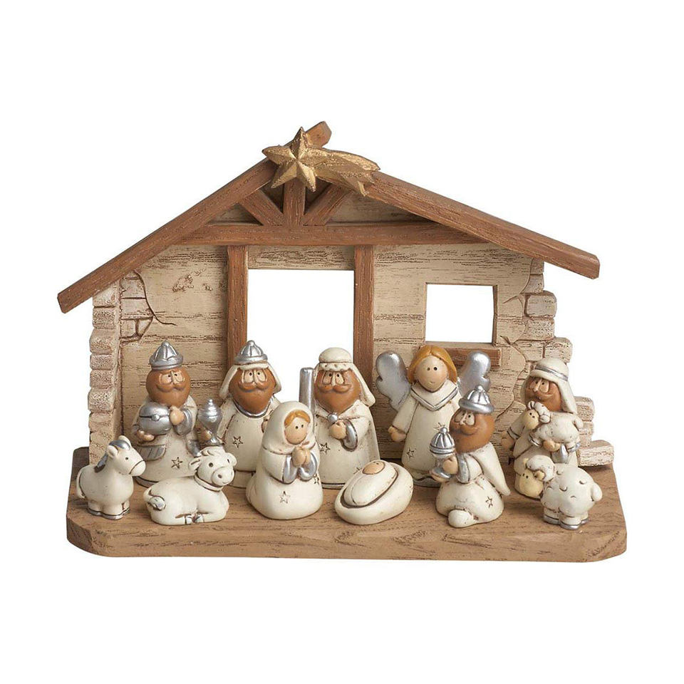 Religieux Miniature Blanc Ensembles De Nativité Statue Figurine Avec Crèche, Lot de 12