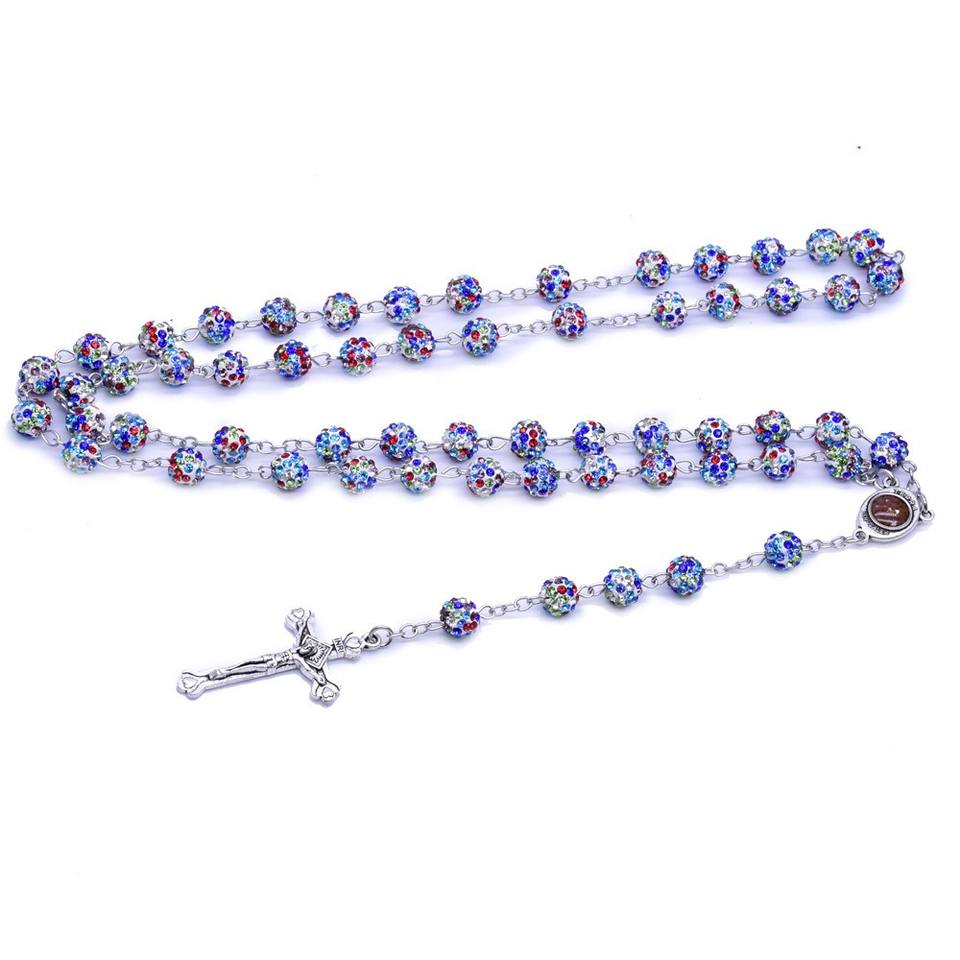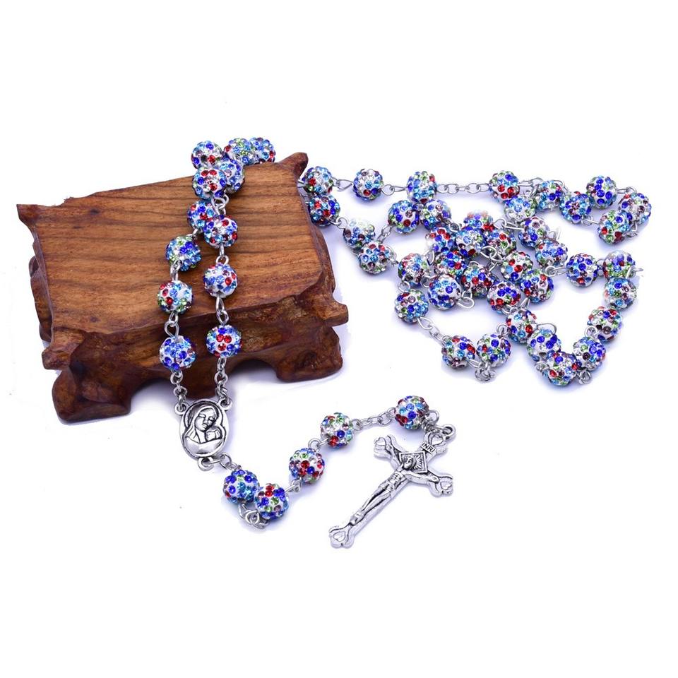 Perles d'argile polymère de prière religieuse, collier de chapelet avec pendentif Crucifix