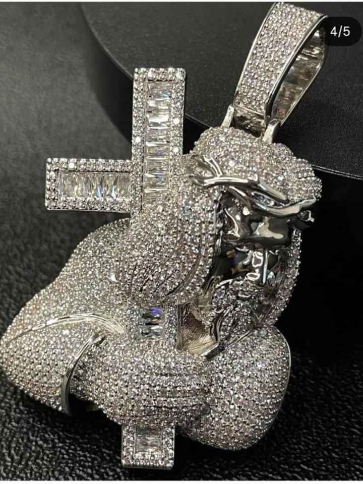 Pendentif religieux en moissanite ronde de forme diamant Jésus pour unisexe, en argent sterling 925, bijoux fins, pendentifs et breloques