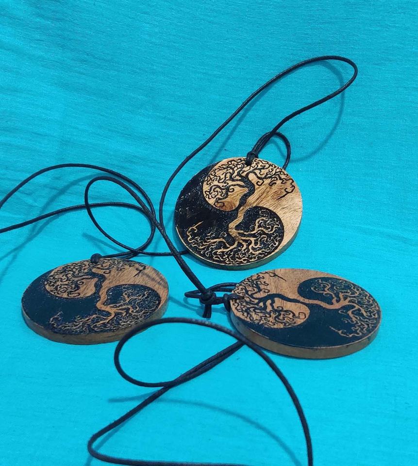 Religious Wood Pendant Necklace Tree of Life Fashion Jewelry Round Shape Antique Statement Neck Piece for Women Boho