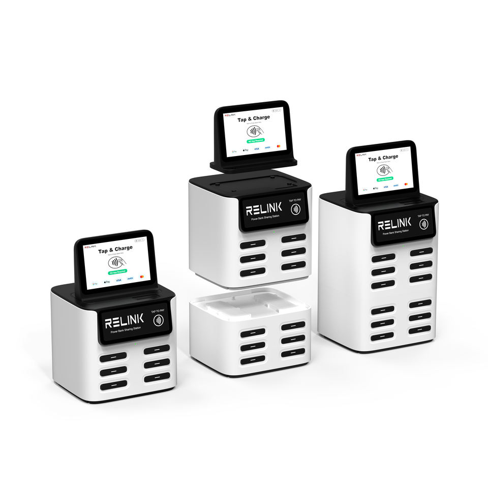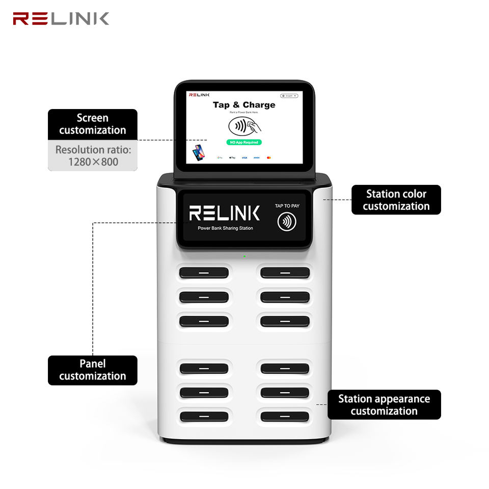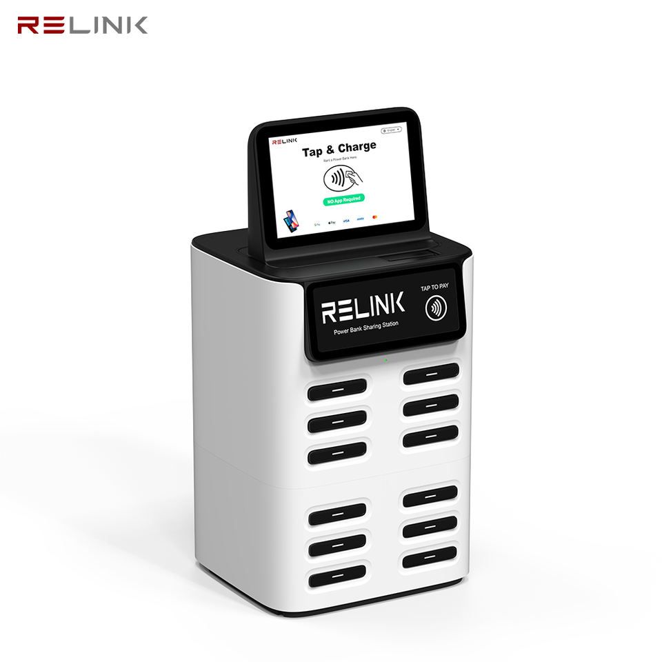 Relink Station de recharge de téléphone portable à 12 emplacements, location de batterie, kiosque de partage, station de location de batterie partagée