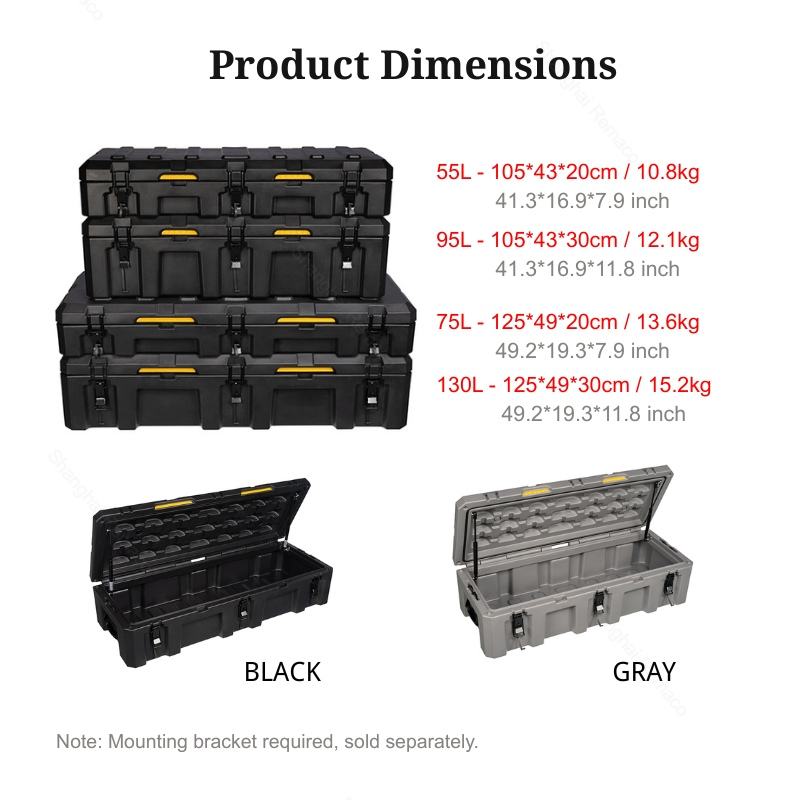 Boîte de rangement portable en plastique pour toit de véhicule Remaco Overlander 4x4 75/95/130L, robuste, pour camping 4x4, fabrication rotomoulée