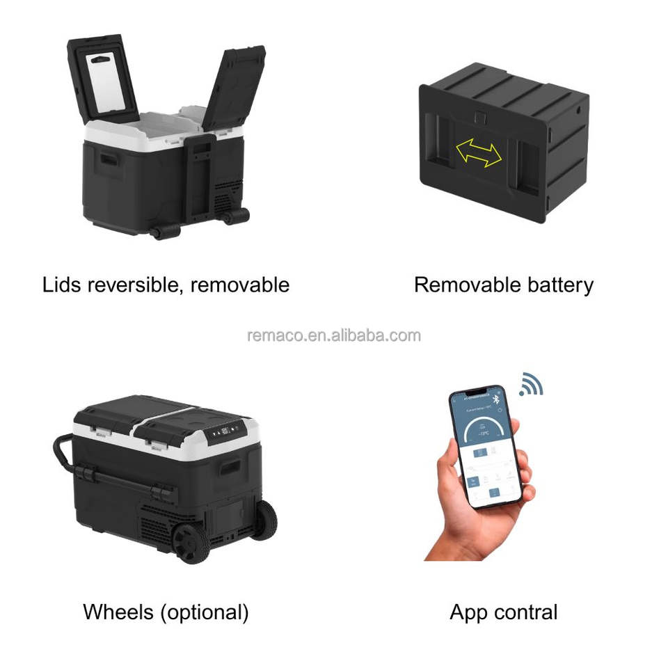 Réfrigérateur-congélateur portable Remaco Overlanding Gear 12V à double zone, contrôle par application, batterie intégrée, en plastique, 40/50/60L, pour voiture, camping-car, camion