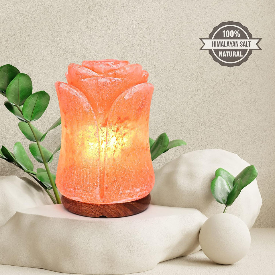 Lampe de sel rose en forme de fleur, fabriquée à la main, en matériaux organiques, au toucher réel, pour la décoration des fêtes et des mariages - Taille personnalisée