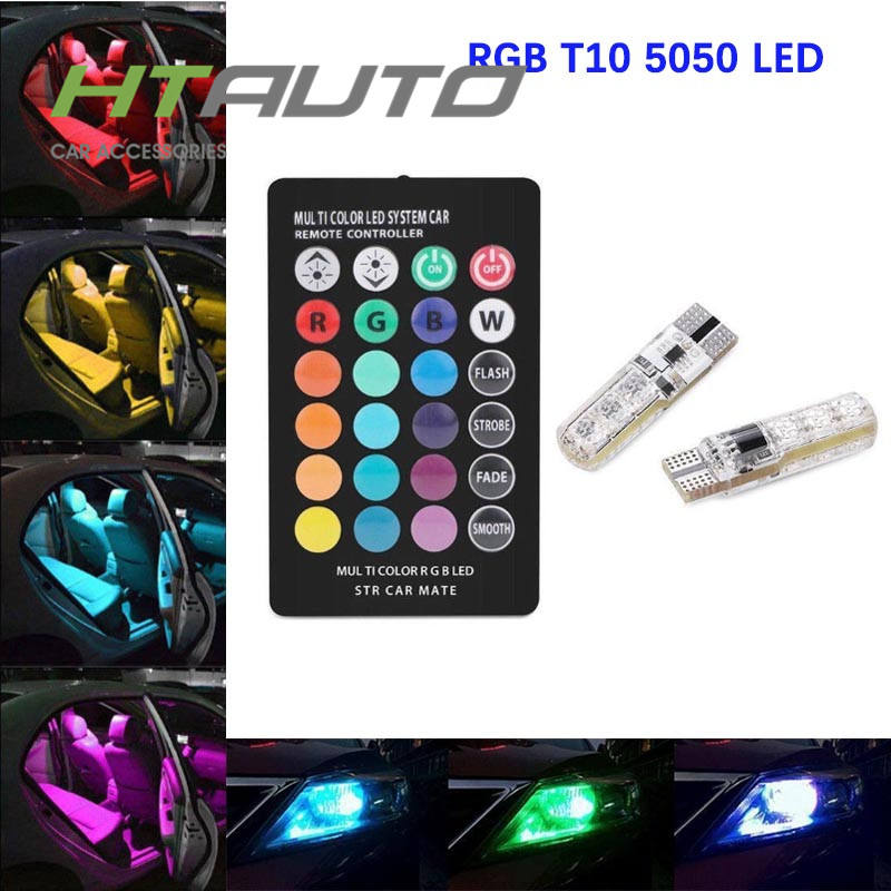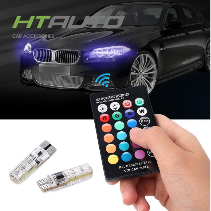 Ampoules en Silicone pour voitures, Led 12V T10 5W, télécommande RGB, 5050 Canbus, indicateur de voiture, étanche