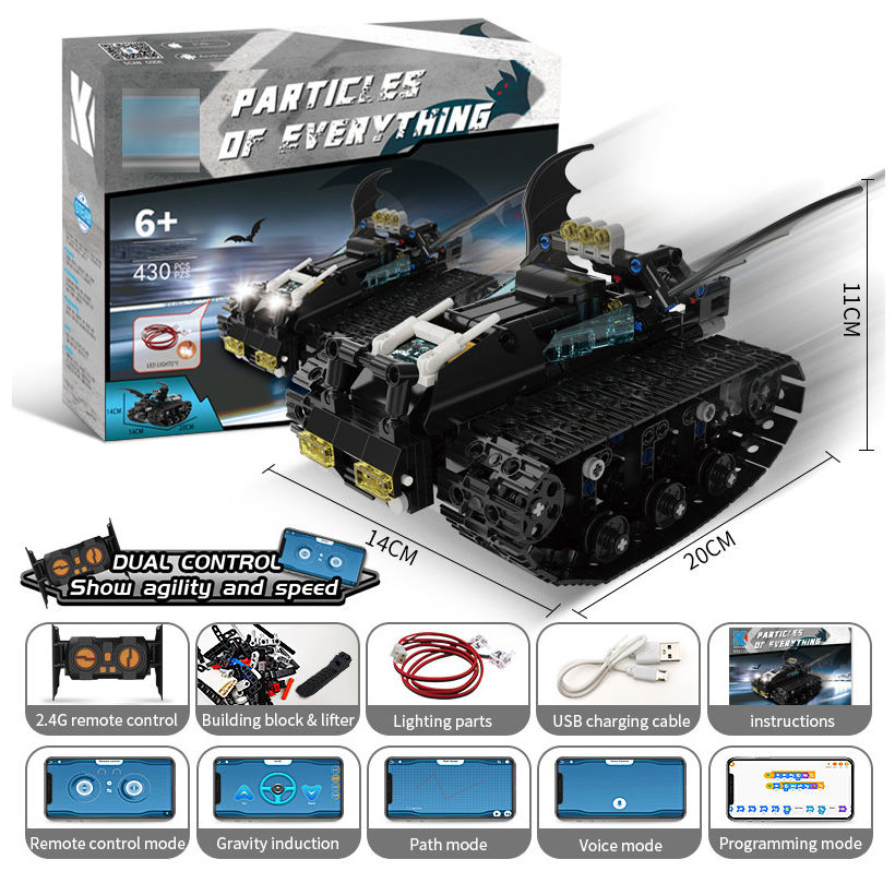 Remote Control Electric Batmobile Rc Tank Car Toy 422PCS Construction Programming Building Block Car